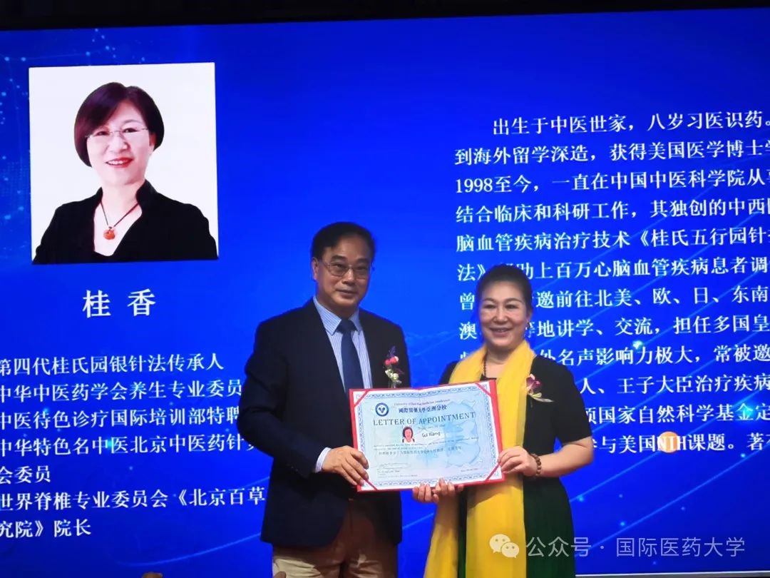 庄重的教授聘任颁证仪式正式拉开帷幕,桂香、张雪梅、刘海南、何伟、汤宏勇、等六位医学界卓越人士受聘为国际医药大学亚洲分校教授。
