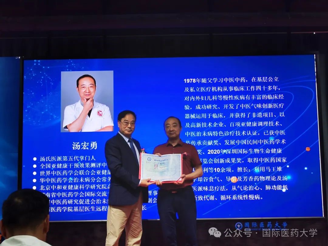 国际医药大学副校长亚洲分校校长高精鍊博士致辞,深度阐释此次活动的深远意义。国际医药大学亚洲办发布了国际医药大学以产、学、研、用、联、融为主导的健康生态项目,展现出国际医药大学整体产业生态的前瞻性与创新性。会上,高精鍊校长向何伟先生、王乐群先生颁发国际医药大学亚洲分校校董聘书,校董们将为学校的可持续发展奉z校董王乐群更是激情澎湃地分享了他对国际医药大学和高精錬校长对中医药人才培养及老中医保护等高度赞赏。
